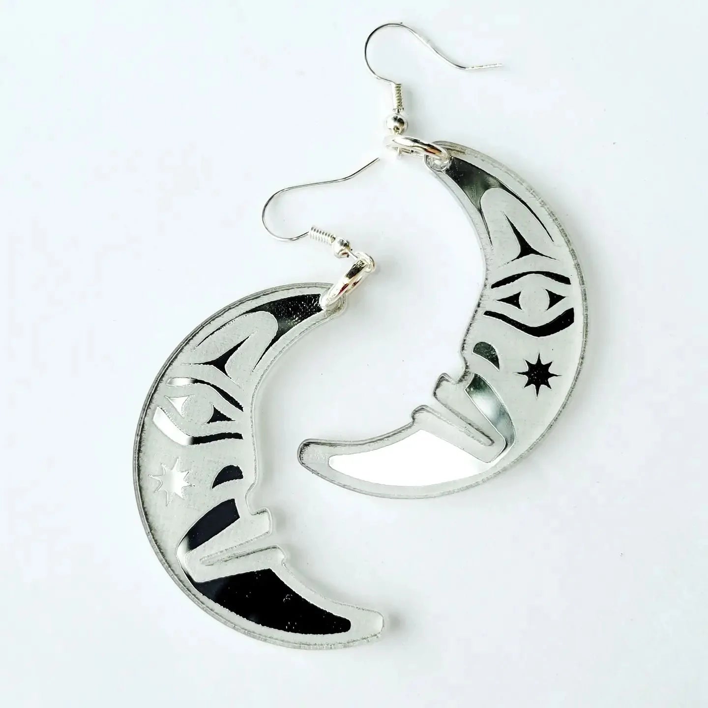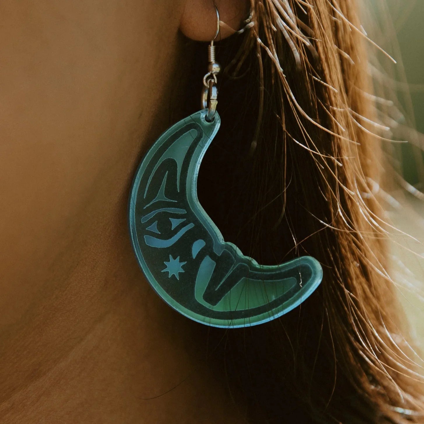 Feel the balance inspired by the moon’s innate rhythms. This design honors the wisdom of stillness, intuition, and the sacred cycles of life. Lightweight acrylic earrings reveal the luminosity with the mirror effect. 2 inch length, 1.80 inch width
